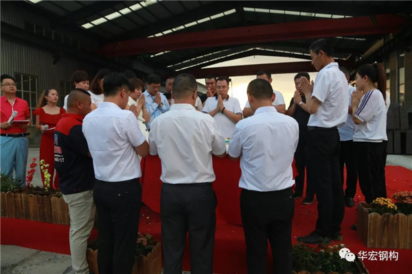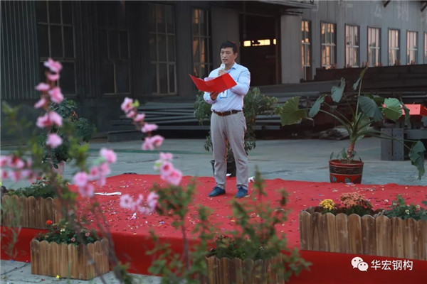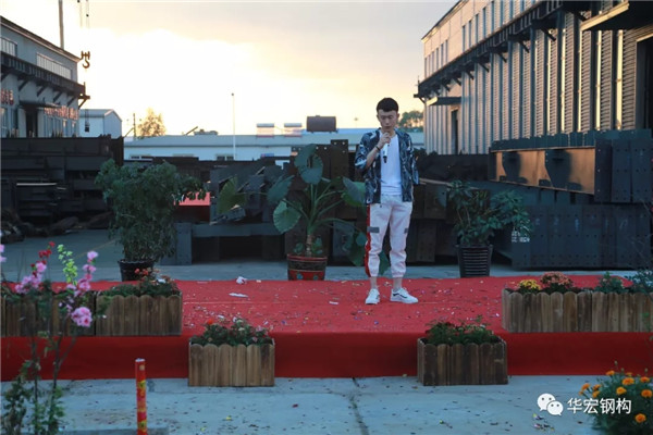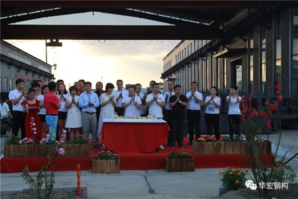 2018年8月8日晚18點(diǎn)00分,在公司鋼構(gòu)廠區(qū)華宏軒舉行了《華宏鋼構(gòu)九周年慶典》,公司董事長(zhǎng)朱宏志、總經(jīng)理朱宏勇、財(cái)務(wù)總監(jiān)劉肖等公司領(lǐng)導(dǎo)和各界嘉賓參加了會(huì)議。以下為大會(huì)現(xiàn)場(chǎng)實(shí)錄。