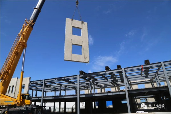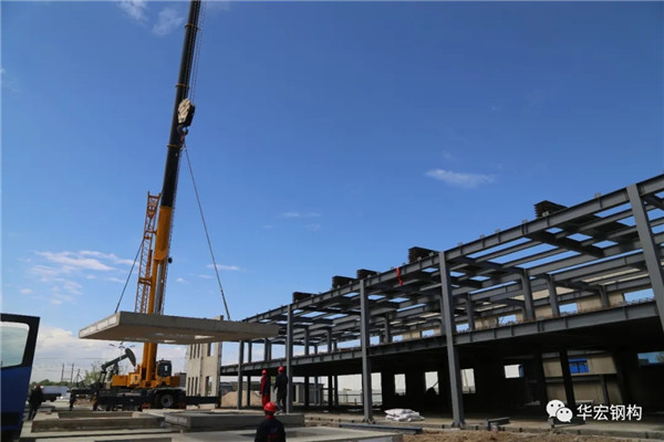 華宏鋼結(jié)構(gòu)裝配式建筑員工公寓樓已初具雛形,目前大型吊裝設(shè)備已進(jìn)場,墻面板正在進(jìn)行施工。