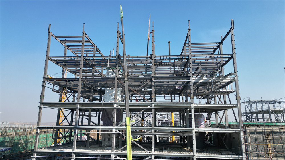 單體建筑面積:7624.37m,建筑高度31.72米,主體為7層結(jié)構(gòu),含鋼量近700噸,采用鋼框架,栓接結(jié)構(gòu),柱為箱型鋼柱,梁為H型鋼梁,每層平臺上設(shè)有多個設(shè)備洞口,里面設(shè)備多,加工工藝復(fù)雜,施工多專業(yè)交叉作業(yè),工期緊,需各專業(yè)高度配合,施工難度大,需打造成高難度、高精度、高標準工程。