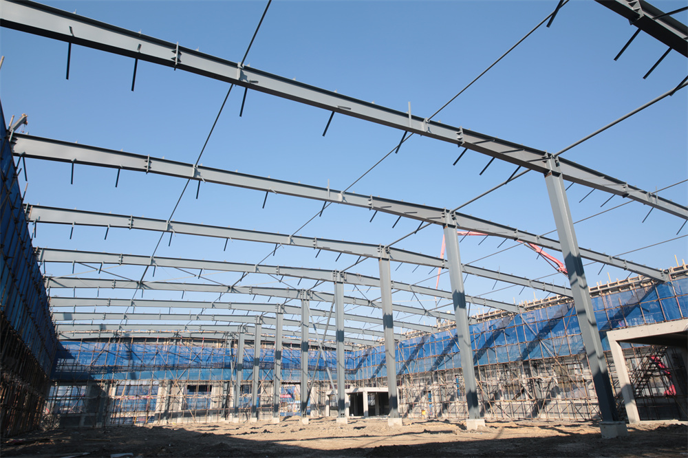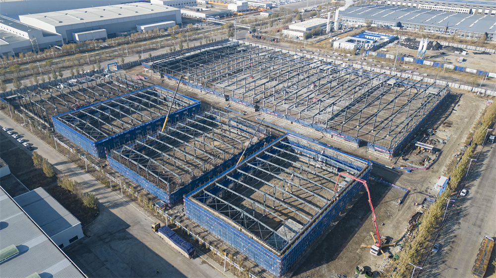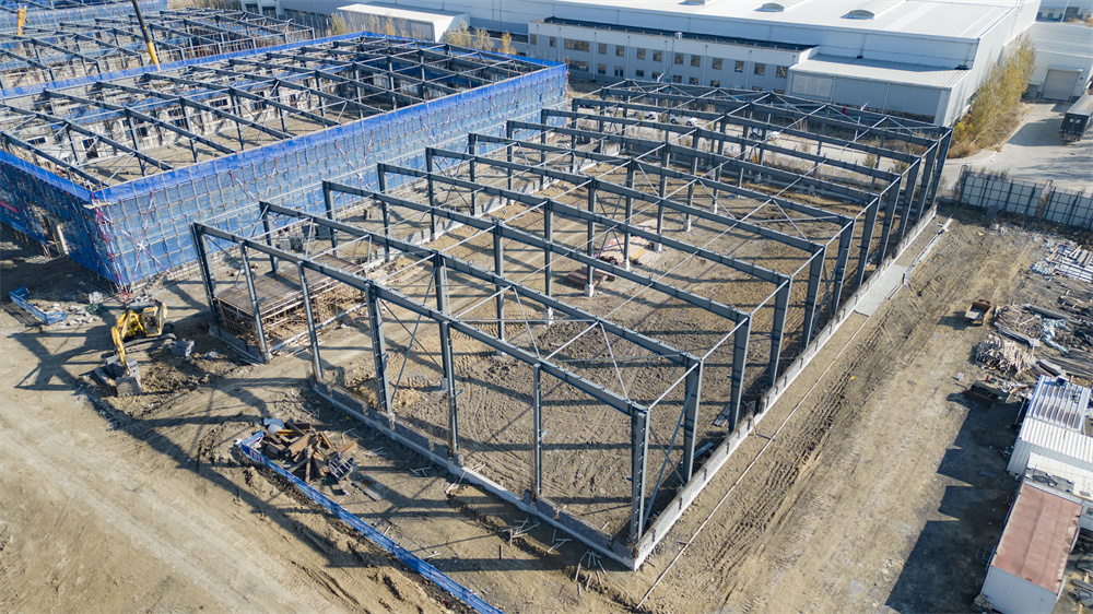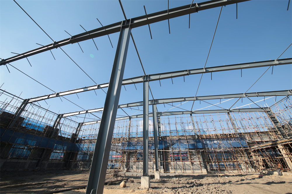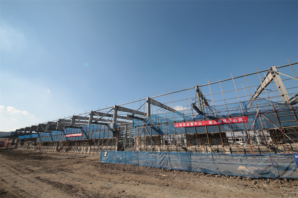 項目特點:該項目共計分為5個單體,*大單體建筑面積為24772.11㎡。*大單體長度為207.6m、寬度108m、高度10.2m。*大單體共計布置16臺吊車,屋面設(shè)置多條電動采光天窗。兩側(cè)縱墻分別縣挑5m寬雨棚,雨棚長度198m。該項目外墻均為土建外墻,鋼柱與士建外墻連接節(jié)點復(fù)雜,增加車間的制作難度。