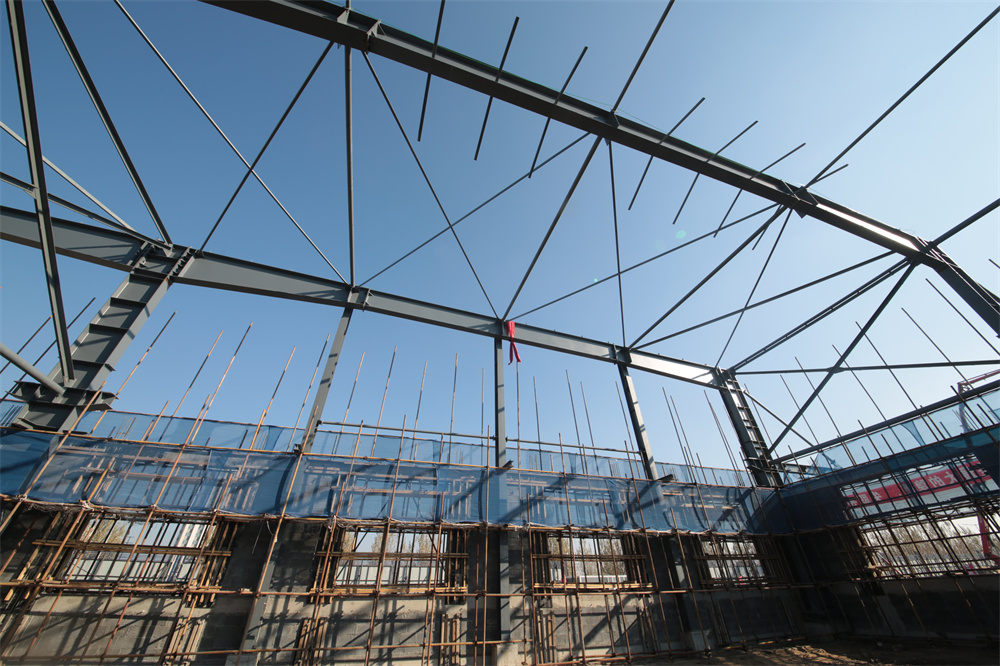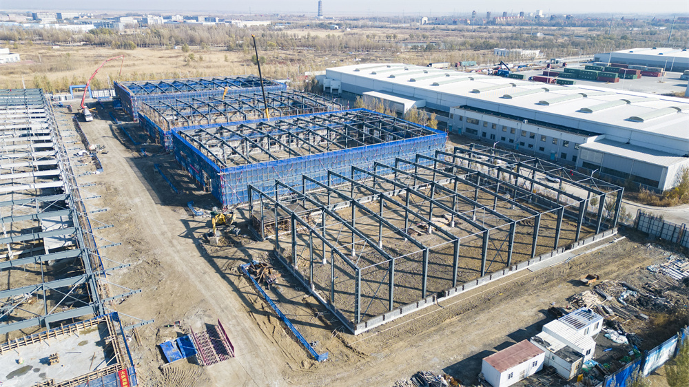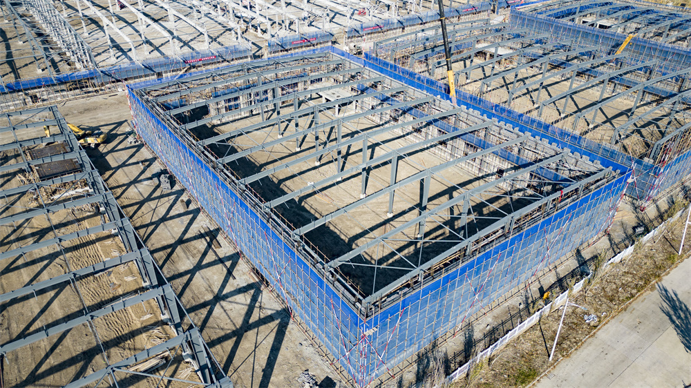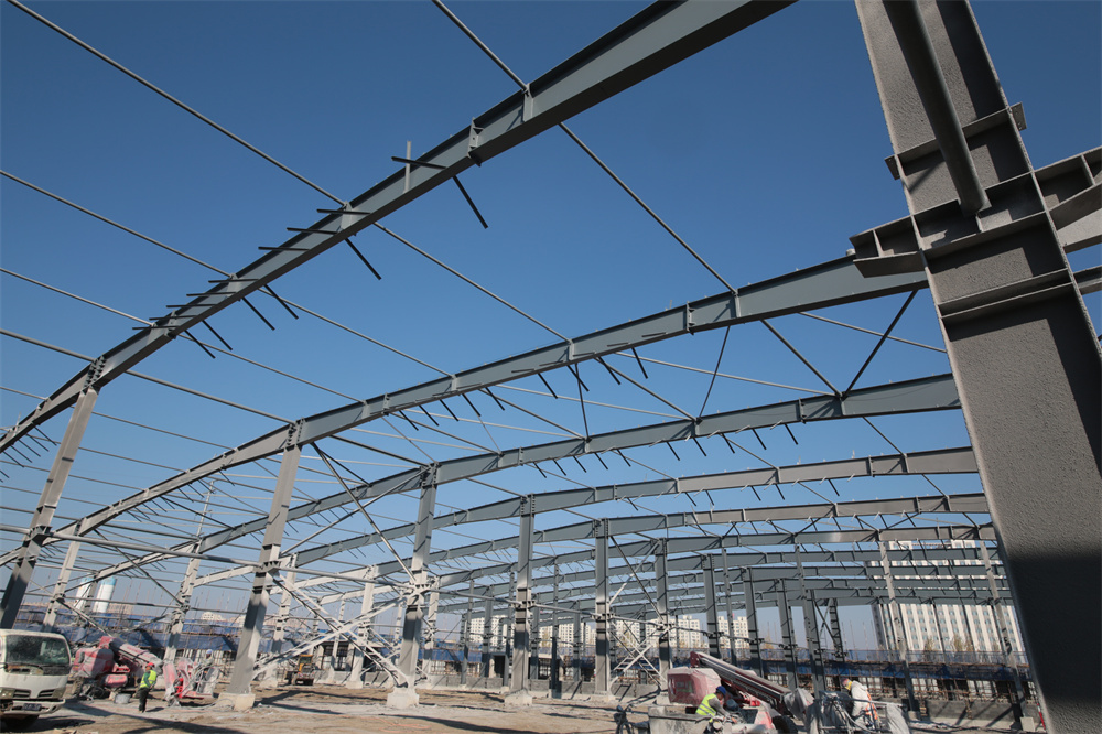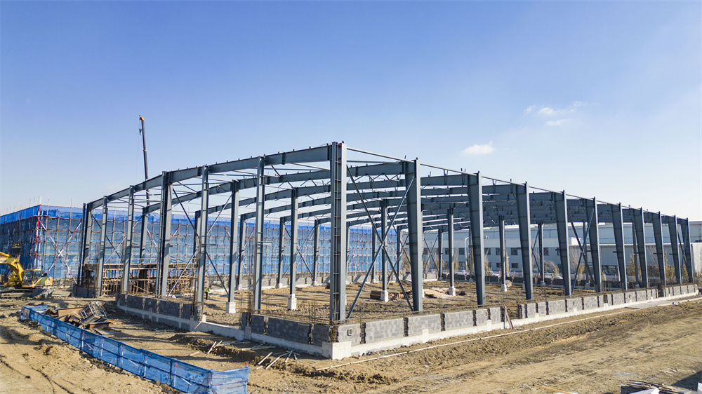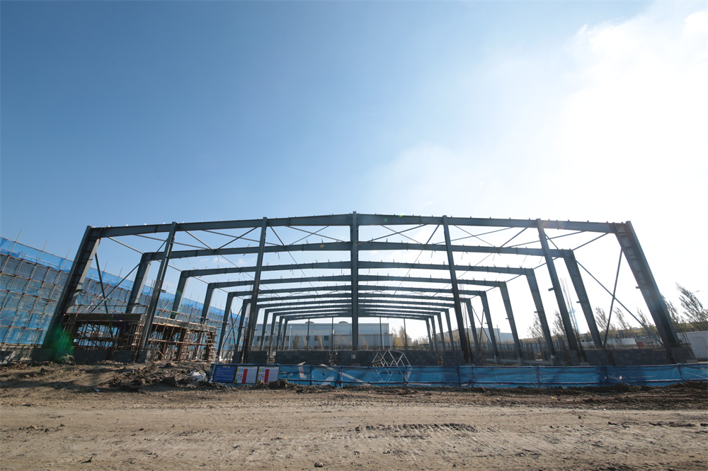 項目特點:該項目共計分為5個單體,*大單體建筑面積為24772.11㎡。*大單體長度為207.6m、寬度108m、高度10.2m。*大單體共計布置16臺吊車,屋面設(shè)置多條電動采光天窗。兩側(cè)縱墻分別縣挑5m寬雨棚,雨棚長度198m。該項目外墻均為土建外墻,鋼柱與士建外墻連接節(jié)點復(fù)雜,增加車間的制作難度。